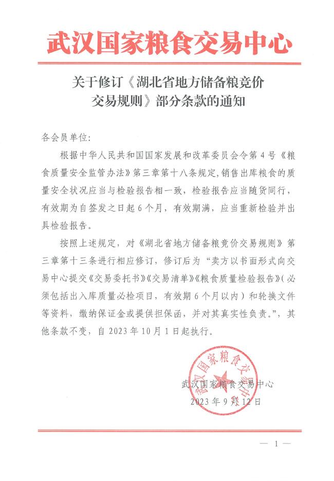 關(guān)于修訂《湖北省地方儲備糧競價交易規(guī)則》部分條款的通知