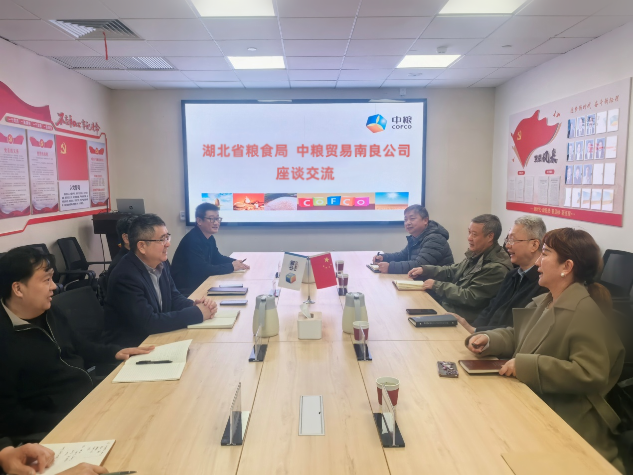 新春伊始,萬象更新。在全省上下積極投入支點建設,奮力沖刺“開門紅、開門好”濃厚氛圍中,2月7日,湖北省糧食局負責人帶領局產業處、湖北糧網一行,專程赴中糧貿易南良有限公司開展新春走訪,向企業致以誠摯的節日問候,并圍繞深化糧食產銷合作、共促產業高質量發展進行深入交流。座談交流中,省糧食局對中糧貿易南良有限公司長期以來在保障地方糧食安全、促進糧食產業經濟發展、支持糧食在線交易等方面給予的大力支持表示感謝。充分肯定中糧貿易南良有限公司一直保持高度的政治責任感和使命擔當,在疫情最危難的時刻顯身手,通過武漢糧食交易中心成交了10萬噸定向飼料糧,并進行規范處理,為保供穩市發揮了不可替代作用,彰顯了國企的擔當,為保障糧食安全、穩定作出了重要貢獻。希望今后能進一步發揮自身強大的號召力與引領力,加強央地合作,特別是利用國家糧食交易平臺,鞏固擴大貿易合作,共同帶動上下游企業一道做大做強,省糧食局、湖北糧網將繼續做好“店小二”,為企業在糧食交易、市場推廣、品牌打造等方面做好服務。中糧集團湖北區域辦公室王世學、中糧貿易南良有限公司研督員馮峰先后發言,對省糧食局一行的到訪表示歡迎,對湖北糧網對企業的支持合作表示感謝,熱情介紹了過去一年的成績和新一年的發展規劃,他們表示,中糧集團非常注重湖北市場,重倉投資湖北,在湖北布局企業數量居于前列。公司也將繼續發揮央企資源整合優勢,依托省糧食局的政策引導,利用好國家糧食交易平臺資源稟賦,全力謀劃新年工作,面對新形勢新任務,希望與湖北糧網進一步拓展合作,以“優勢互補、協同創新”為原則,在渠道建設、糧源拓展方面深度交流,擦出火花,為湖北糧食安全與產業發展奠定更好基礎。湖北省糧食局產業與市場處、湖北糧網、中糧貿易南良有限公司有關部門負責人共同參與調研座談。